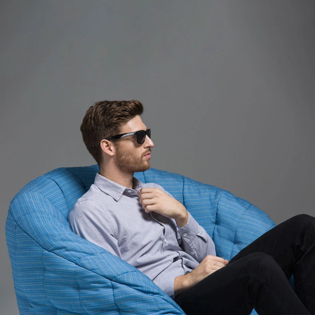 Täyttöohjeet: Huomaa ensin, että Butterfly-istuimessa on kaksi täyttöaluetta, yksi selälle ja yksi alustalle (istuinosalle). Suositellaan, että takaosa täytetään tiukasti ja hyvin, ja istuinosa hieman löysemmin parhaan mukavuuden ja tyylin saavuttamiseksi. Käytä aina Ambient Lounge -turvalukitusvälinettä tai paperiliitintä avataksesi lapsiturvalliset turvavetoketjut säkkituolin päällisessä.