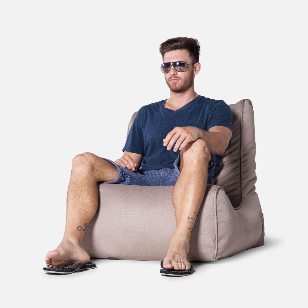 Rentoudu terassilla Outdoor Evolutionin kanssa. Säkkituoli on vedenpitävä, mutta samalla uskomattoman pehmeä ja mukava. Juuri tämä tekee huonekalusta monikäyttöisen, ja sitä voi käyttää uima-altaan reunalla, parvekkeella ja jopa talvipuutarhassa.