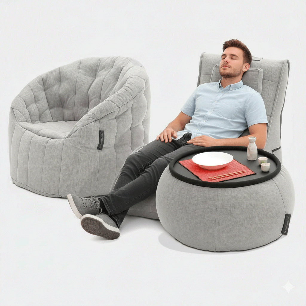 Luo kontrasti huoneistosi tai toimistosi jäykille linjoille Loft Packagen rentouttavilla kaarilla! Tämä kaunis setti on täydellinen olohuoneisiin, perhehuoneisiin, kotiteattereihin, pelihuoneisiin ja baareihin. Se koostuu Avatar Loungerista, Butterfly-sohvasta ja yhteensopivasta Versa-pöydästä. Poista pöytälevy, niin sinulla on kaunis jalkatuki ja kätevä varapaikka!
