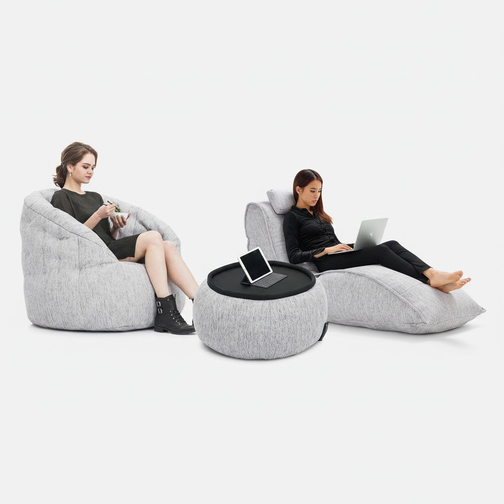 Luo kontrasti asuntosi tai toimistosi jäykille linjoille rentouttavilla Loft Packagen kaarilla! Tämä kaunis setti on täydellinen olohuoneisiin, perhehuoneisiin, kotiteattereihin, pelihuoneisiin ja baareihin. Se koostuu Avatar Loungerista, Butterfly-sohvasta ja yhteensopivasta Versa-pöydästä. Poista pöytälevy, niin sinulla on kaunis jalkatuki ja kätevä varapaikka!