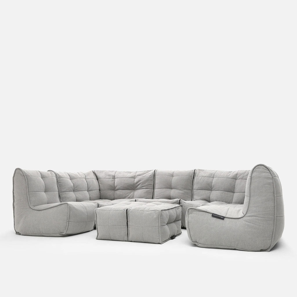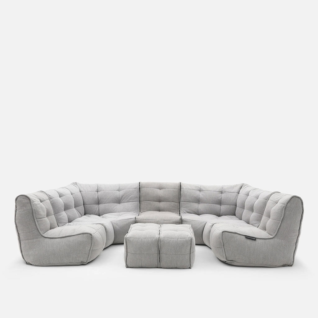 Mod 6 Lounge Max on Ambient Loungen suurin moduuli, eikä nimi valehtele – se antaa sinun rentoutua maksimaalisesti! Moduuli koostuu 1 Twin Couchista, 2 Modular Cornerista, 1 Modular Link Singlestä ja mikä tärkeintä, 1 Twin Ottomanista. 6 istumapaikkaa ja 1 jalkarahi tarkoittavat, että voit kutsua vieraita milloin haluat!