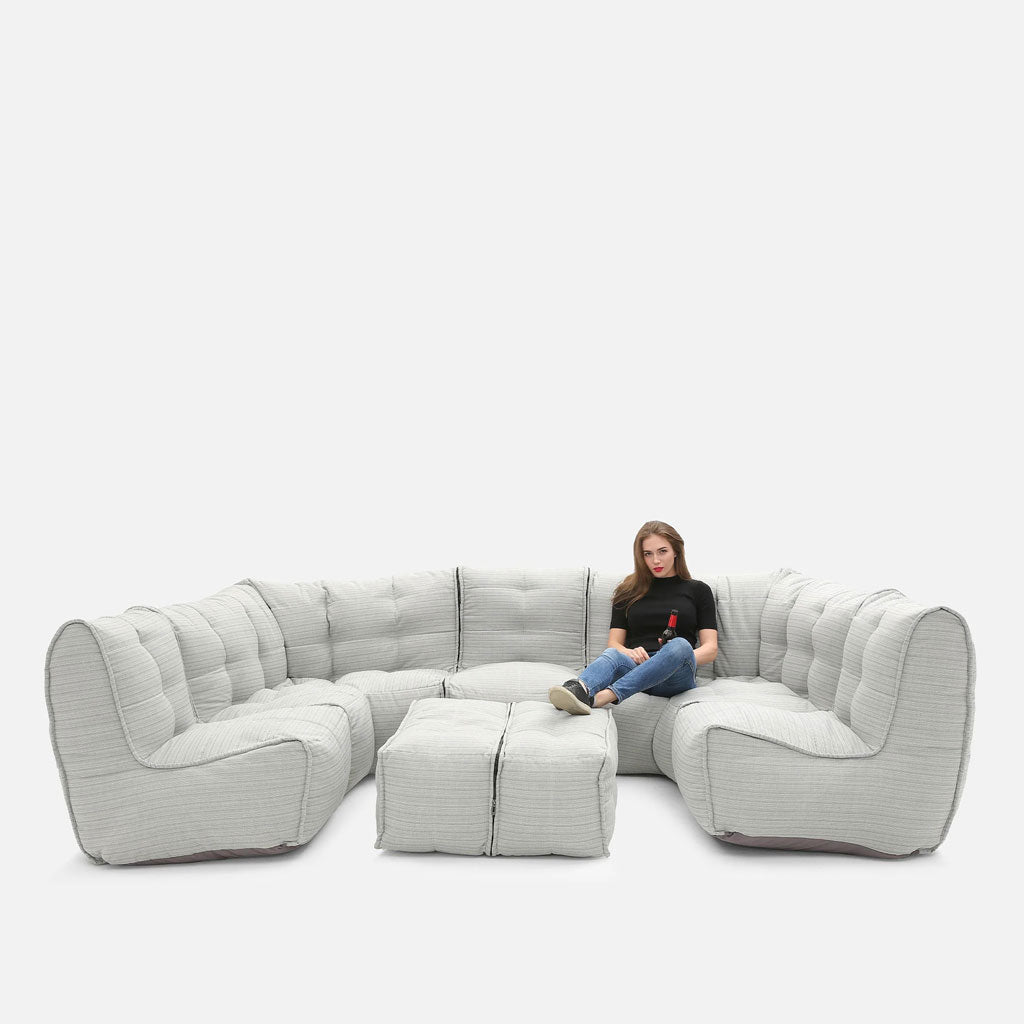 Mod 6 Lounge Max on Ambient Loungen suurin moduuli, ja nimi ei valehtele – se antaa sinun rentoutua maksimaalisesti! Moduuli koostuu yhdestä Twin Couchista, kahdesta Modular Cornerista, yhdestä Modular Link Singlestä ja ei vähiten yhdestä Twin Ottomanista. 6 istumapaikkaa ja 1 jalkatuki tarkoittavat, että voit kutsua vieraita milloin haluat!