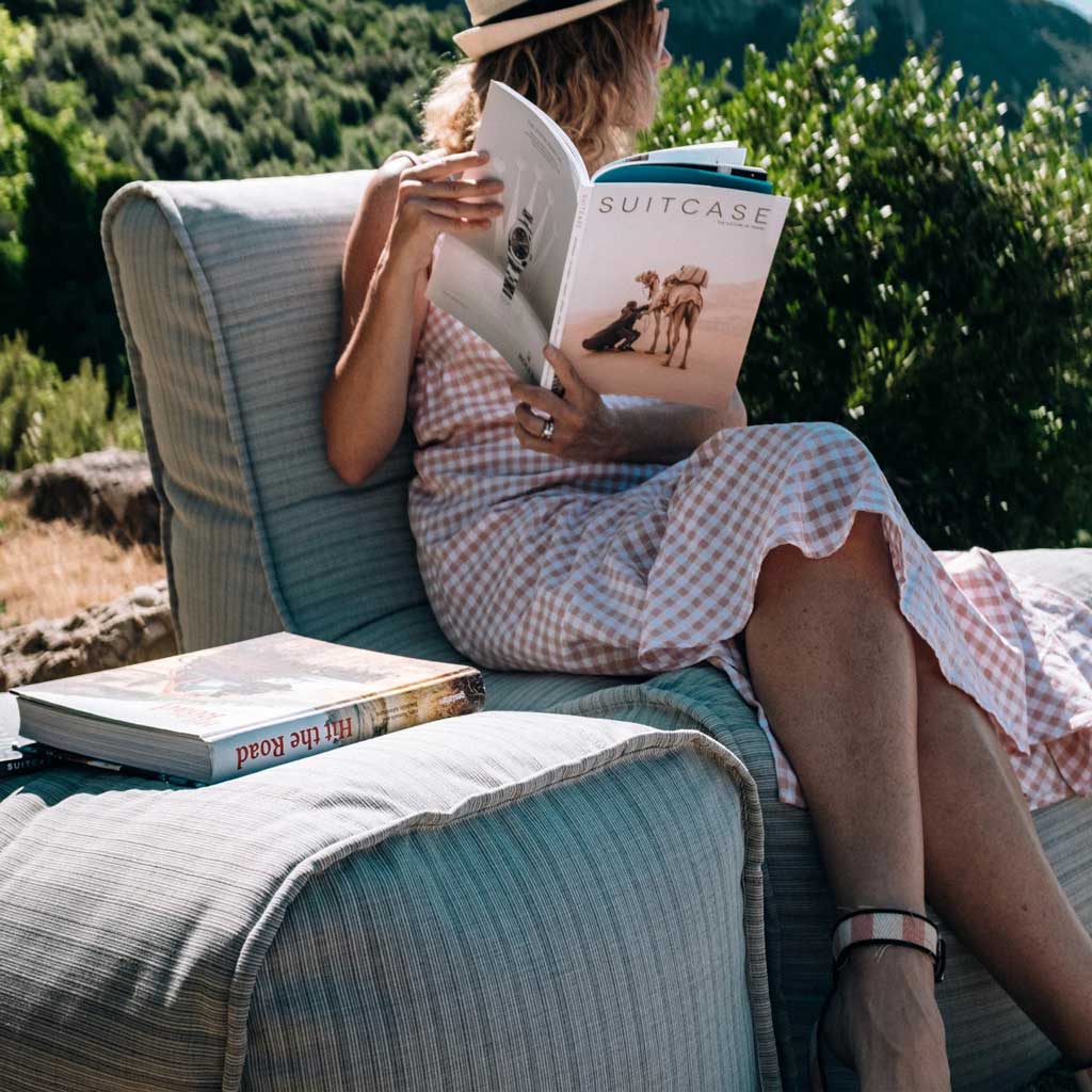 Ottoman Deluxe on Ottoman-rahin isoveli. Tässä voit ojentaa jalkasi ja rentoutua. Tämän rahin kangas on vedenpitävä ja pehmeä. Tämä tekee siitä sopivan yhtä hyvin ulko- kuin sisäkäyttöön. Rahia voi käyttää lisäistuimena, kun tarvitset lisää istumapaikkoja vieraiden saapuessa, tai lepuuttamaan jalkojasi.