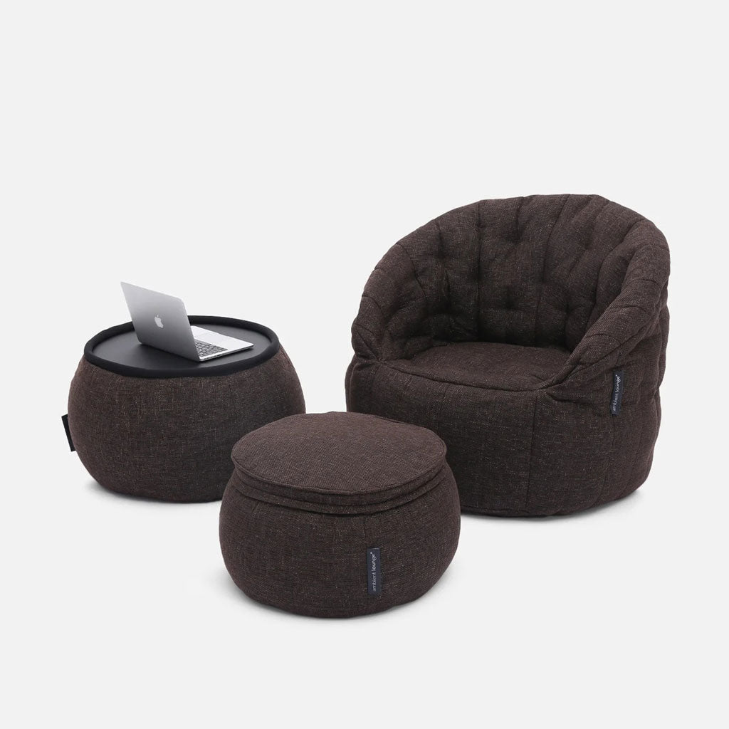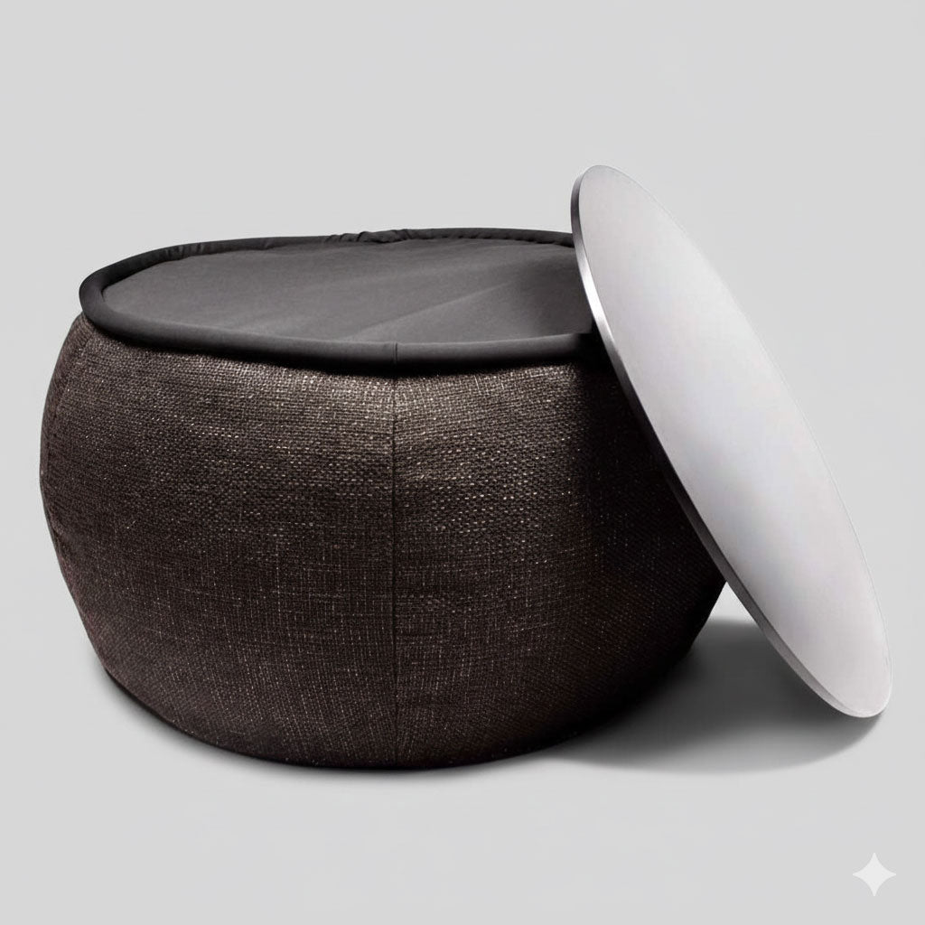 Tämä monitoiminen säkkituolipöytä on kaunis yhdistelmä ylellistä kangasta, jossa on tyylikäs levy päällä. Se on upea aksentti kotiisi. Tyylikäs mutta erittäin toimiva. Versa on sohvapöytä, jalka- ja ottomaanituki ... kaikki yhdessä! Täydennä Ambient Lounge -sohvasi Versalla, joka toimii yhteensopivana sohvapöytänä.