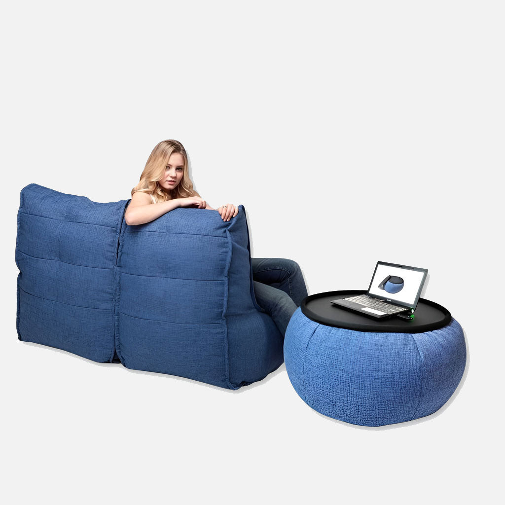 Seuraa samaa menettelyä Twin Couchin toisella puoliskolla, ja kun olet tyytyväinen molempiin puoliin, voit kääntää ne ylösalaisin ja yhdistää ne uudelleen. On mahdollista, että Funnelweb-pussissasi on vielä joitakin helmiä jäljellä. Nämä voidaan säilyttää kotona, jotta niitä voidaan käyttää säkkituolin täyttämiseen tulevaisuudessa, sillä täyte voi ajan myötä puristua kokoon.