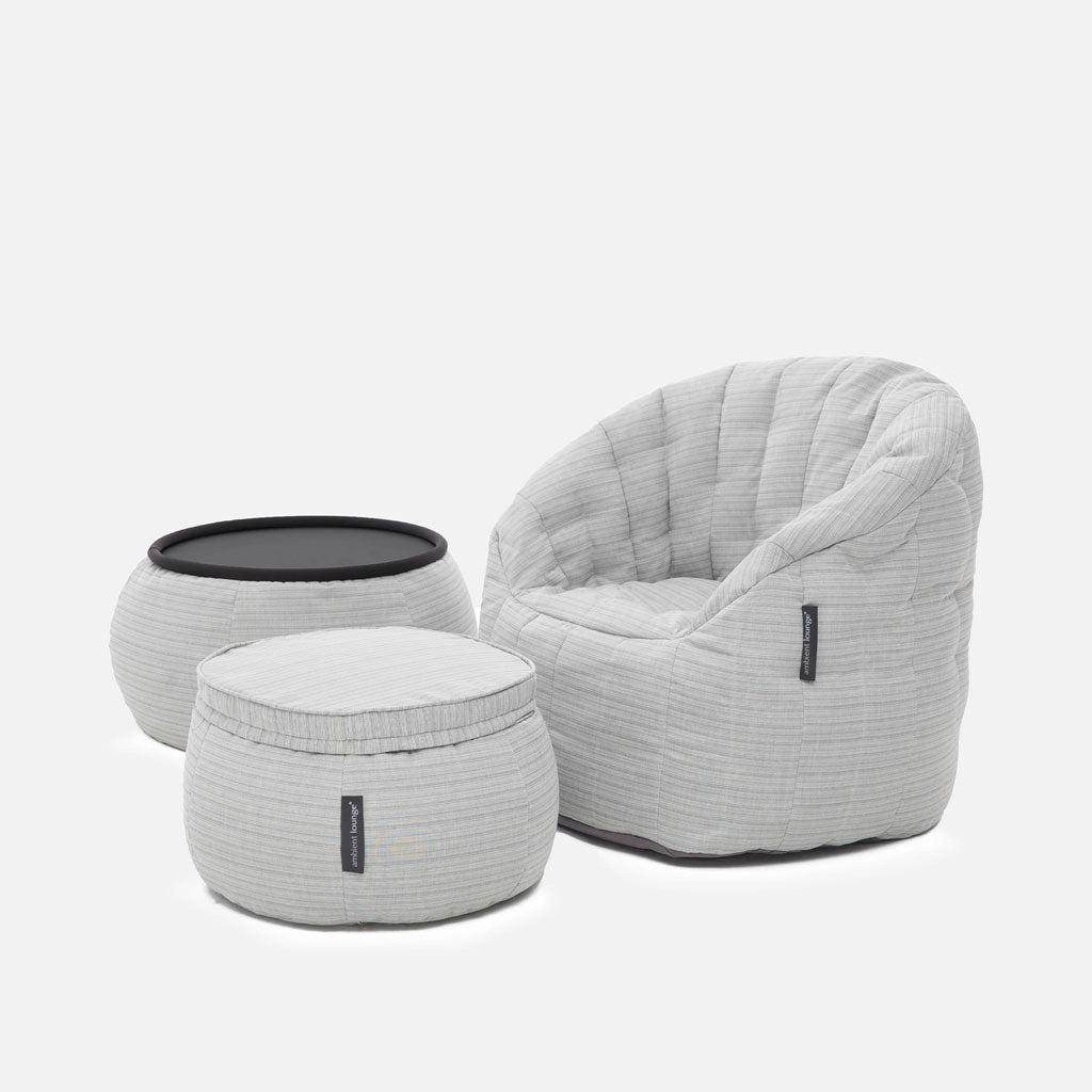Eikä siinä kaikki, Wing Ottoman on suunniteltu sekä sisä- että ulkokäyttöön. Kangas on siksi vedenpitävä ja suunniteltu kestämään säätä, Wing Ottoman - joko Memory Foamin kanssa tai ilman - on taivaallista nostaa jalat ylös päivän päätteeksi. Hanki perhetrio - Butterfly Sohva, Wing Ottoman ja Versa Pöytä piristämään olohuonetta tai upeaksi lisävarusteeksi terassille!